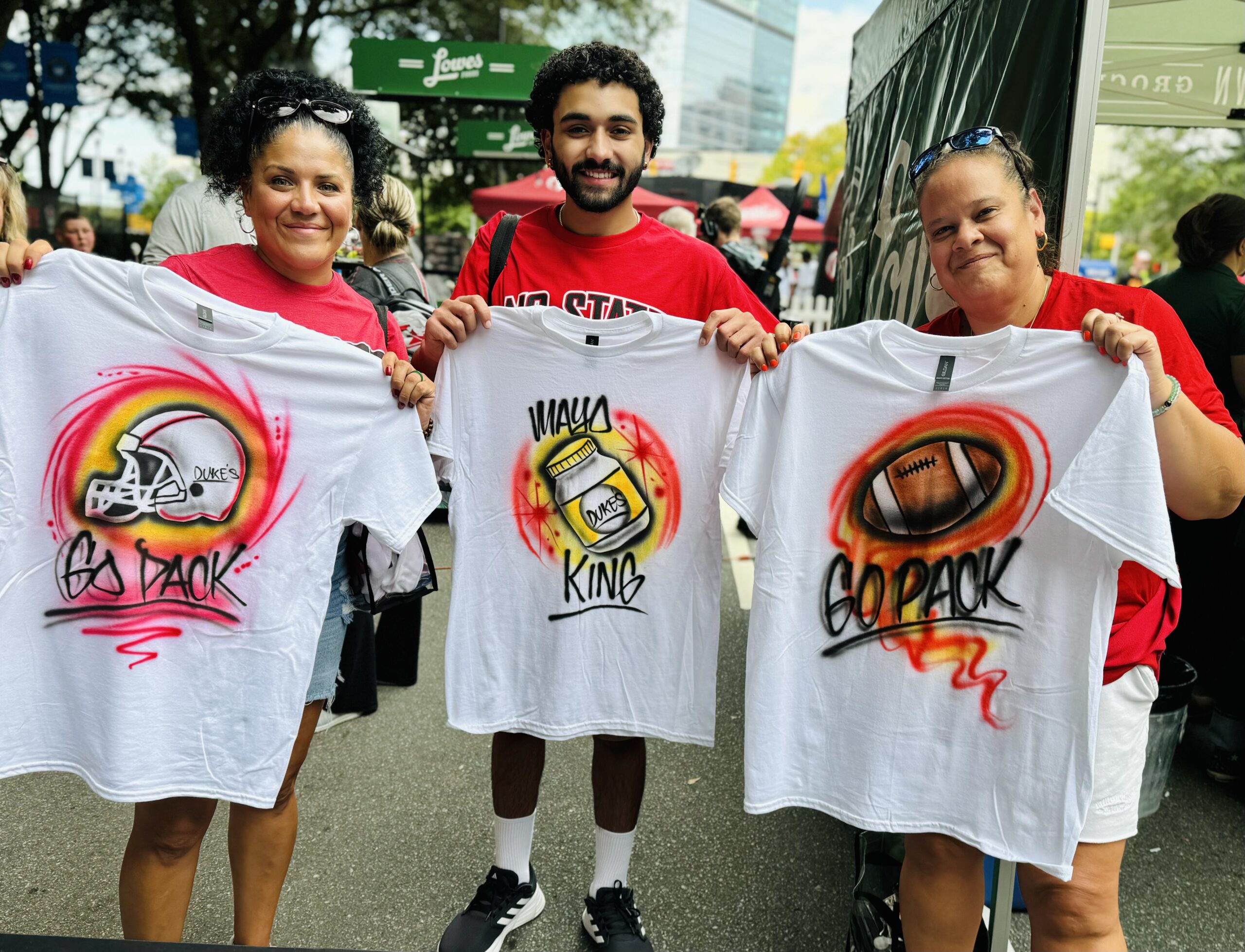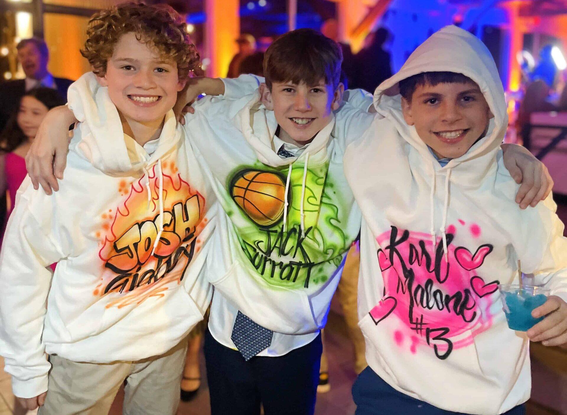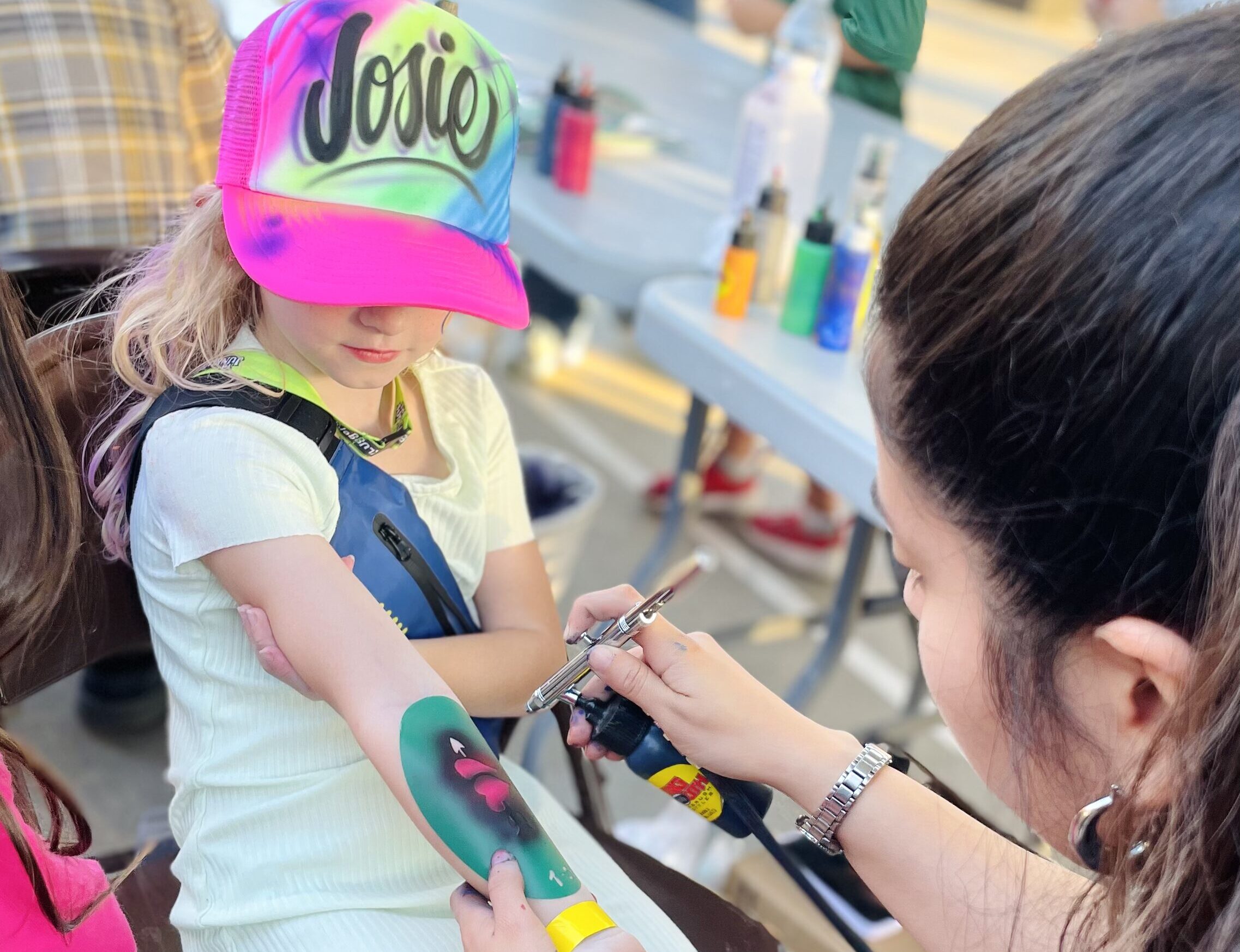 Airbrushing on T-shirts is a creative and popular form of customization at our events! It allows individuals to express their unique style and personality by transforming a plain shirt into a work of art. Whether it’s a name design, favorite quote, or a vibrant illustration, airbrushing adds an eye-catching element to the garment.
